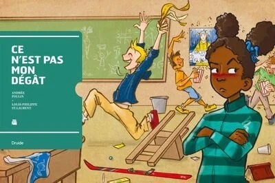 2 I Tout commence par un berlingot de lait au chocolat renversé par accident. Personne ne veut ramasser le dégât. Mais les dégâts s’accumulent, et même la visite de monsieur Angelo, le concierge, ne change rien à la situation. Personne n’est responsable et ne veut ramasser. Le lendemain, la classe est dans un état indescriptible : il y a des déchets partout ! Qui est responsable de ce fouillis ? ANDRÉE POULIN et LOUIS-PHILIPPE ST-LAURENT vous diront Ce n’est pas mon dégât, et pourtant, elle a écrit l’histoire, et il l’a illustrée. Cet album choral, où plusieurs points de vue sont utilisés pour raconter l’histoire, met de l’avant le thème de la responsabilité personnelle avec humour et bienveillance.